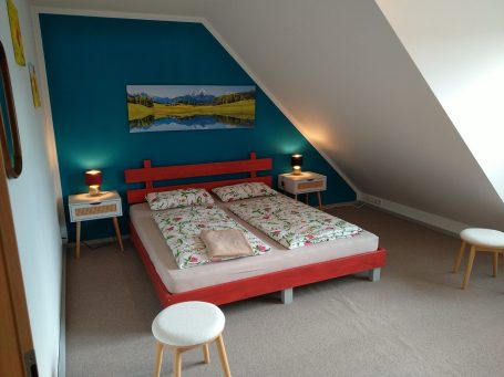 Über eine Treppe in der wohnung ist ein weiterer Raum im Dachspitz erreichbar, welcher drei weiteren Personen Platz bietet